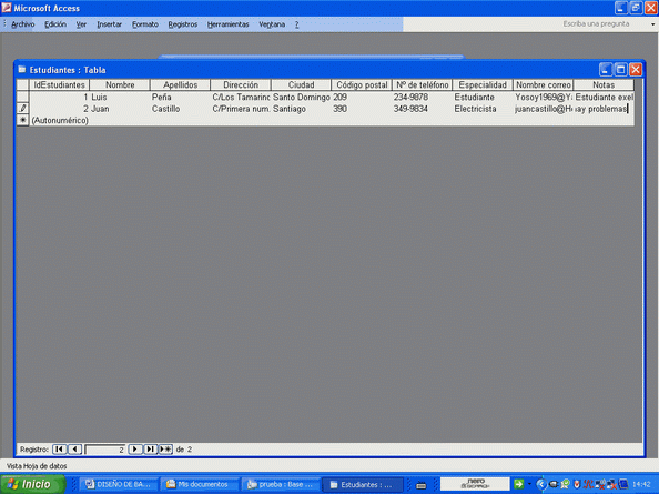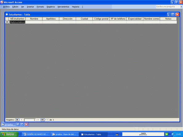 He ahí la tabla creada con el asistente y vacía. Entre algunos datos.