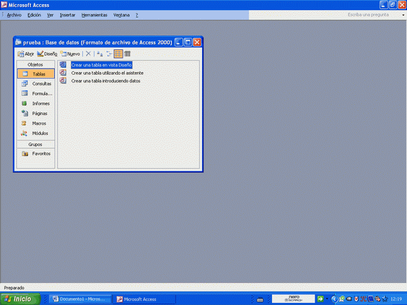 Luego de escoger el objeto "Tablas" a la derecha están tres opciones:- Crear una tabla en vista diseño
