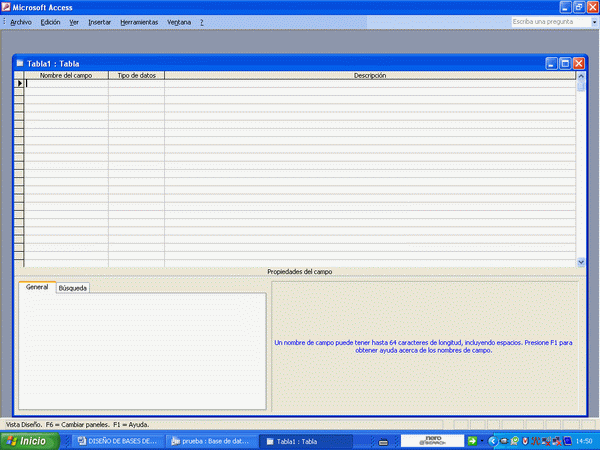 CREANDO UNA TABLA EN MODO DE DISEÑO.